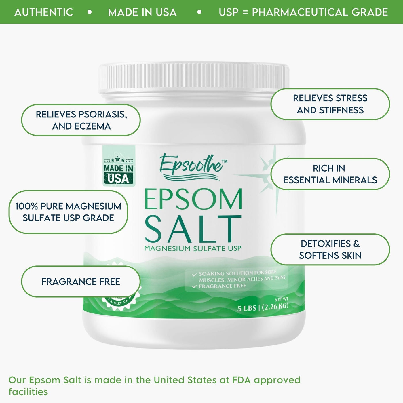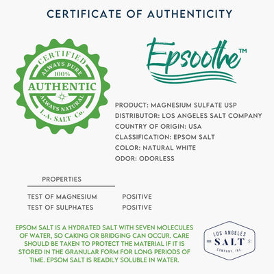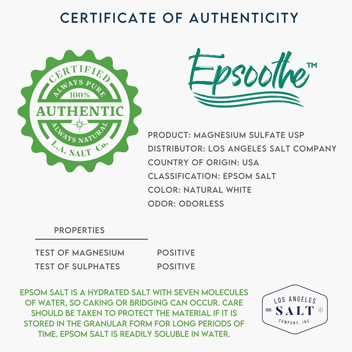 Immerse yourself in a moment of calm with Epsoothe™ Epsom Salt. Made with USP Pharmaceutical Grade Epsom salt—the highest purity available—this mineral-rich soak transforms your bath into a soothing self-care ritual. When dissolved in warm water, it helps create a relaxing environment that invites you to pause, breathe, and unwind. Let go of the day and float into stillness. You deserve it.