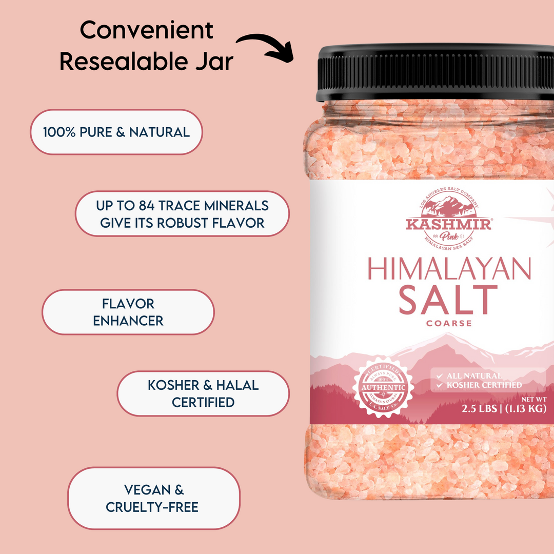 Kashmir Pink® Himalayan salt is as pure as it gets - certified Kosher, Halal, non-GMO, vegan, and cruelty-free. Mined from ancient salt deposits deep in the Himalayan mountains, it’s free from additives and allergens, delivering only clean, mineral-rich flavor in every pinch.